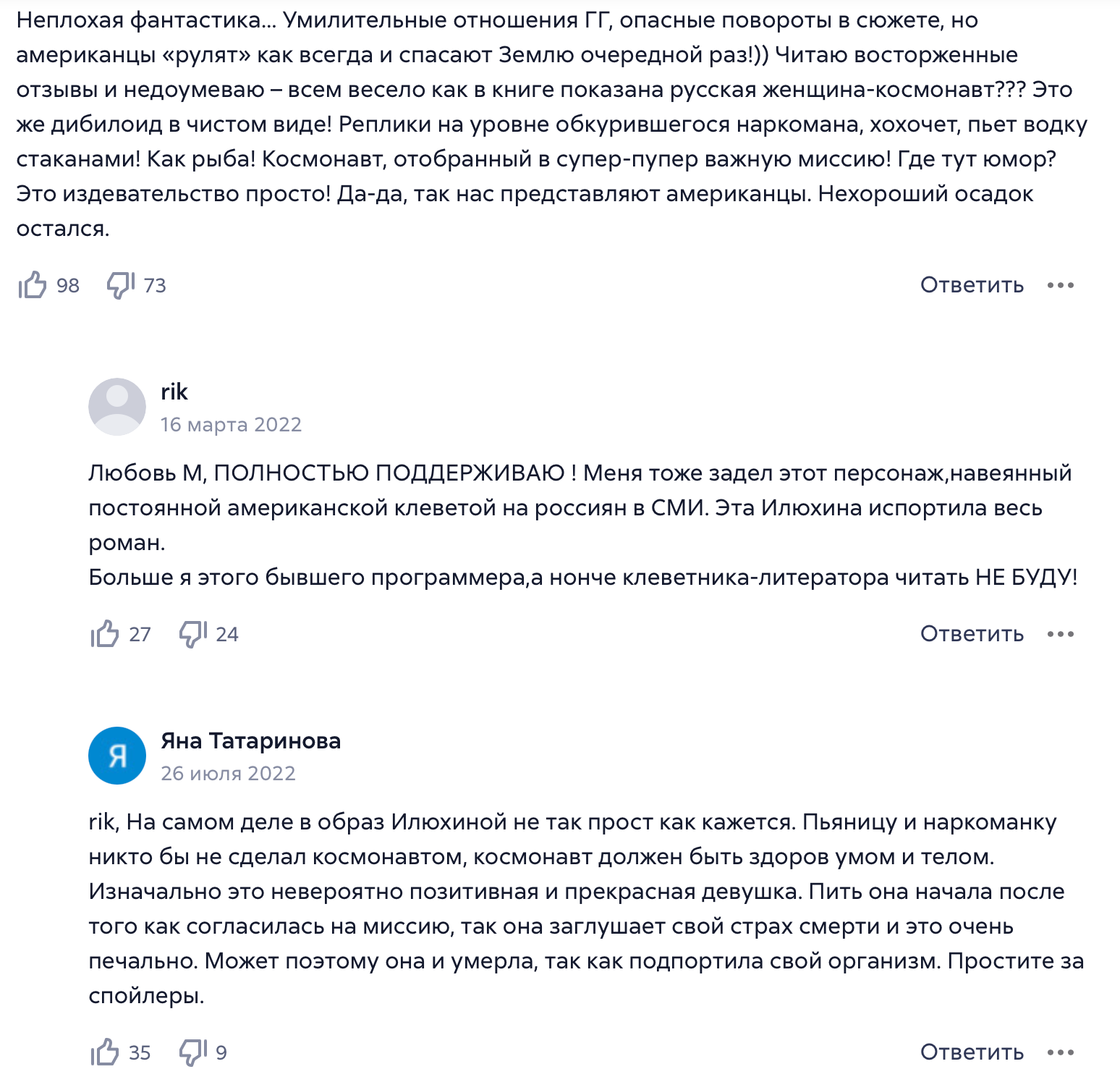 И да, он писал не “про космос”, а про понятные человеческие штуки: страх, ответственность, стыд, дружбу, выбор. Просто декорации космические, а эмоции очень земные. Поэтому герой и работает: он не супермен, он обычный человек, которого вынесло в ситуацию, где надо стать сильнее, чем ты сам о себе думал.
